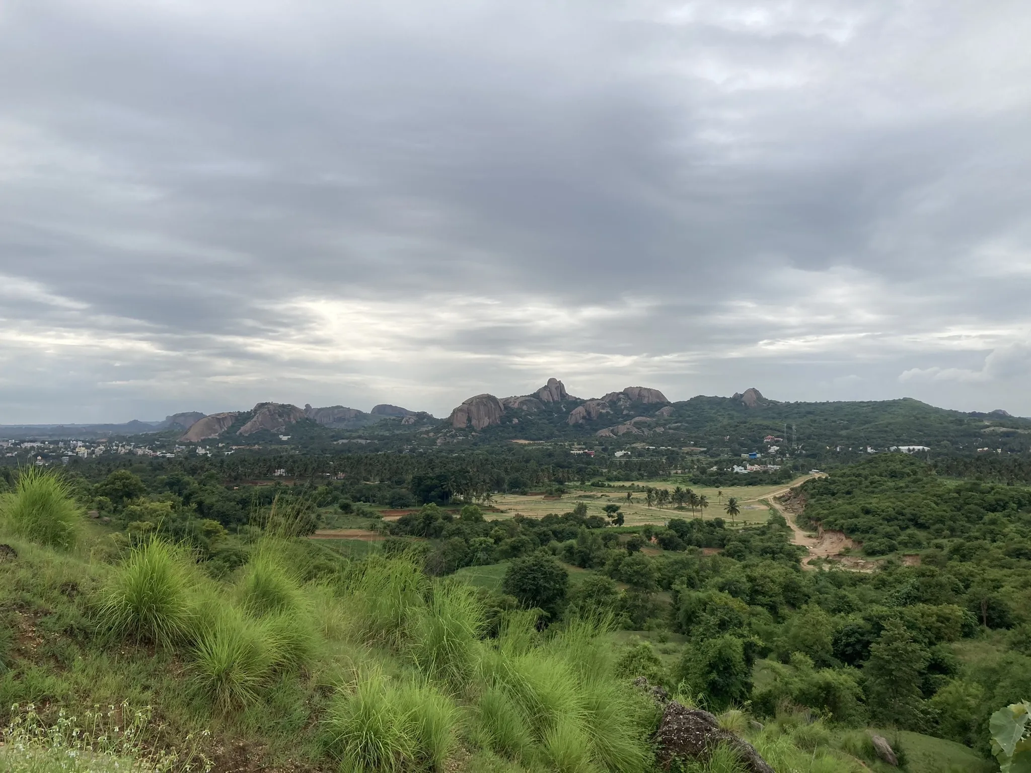 On the edge of Cauvery Wildlife Sanctuary near Hosur lies Valle Malai, a broad-shouldered hill that’s surprisingly climbable through scrub forests and farmland. The trail transforms into a thrilling cross-country ascent—navigating loose rocks, bushes, and tall grass until you emerge onto a flat, grassy plateau.
